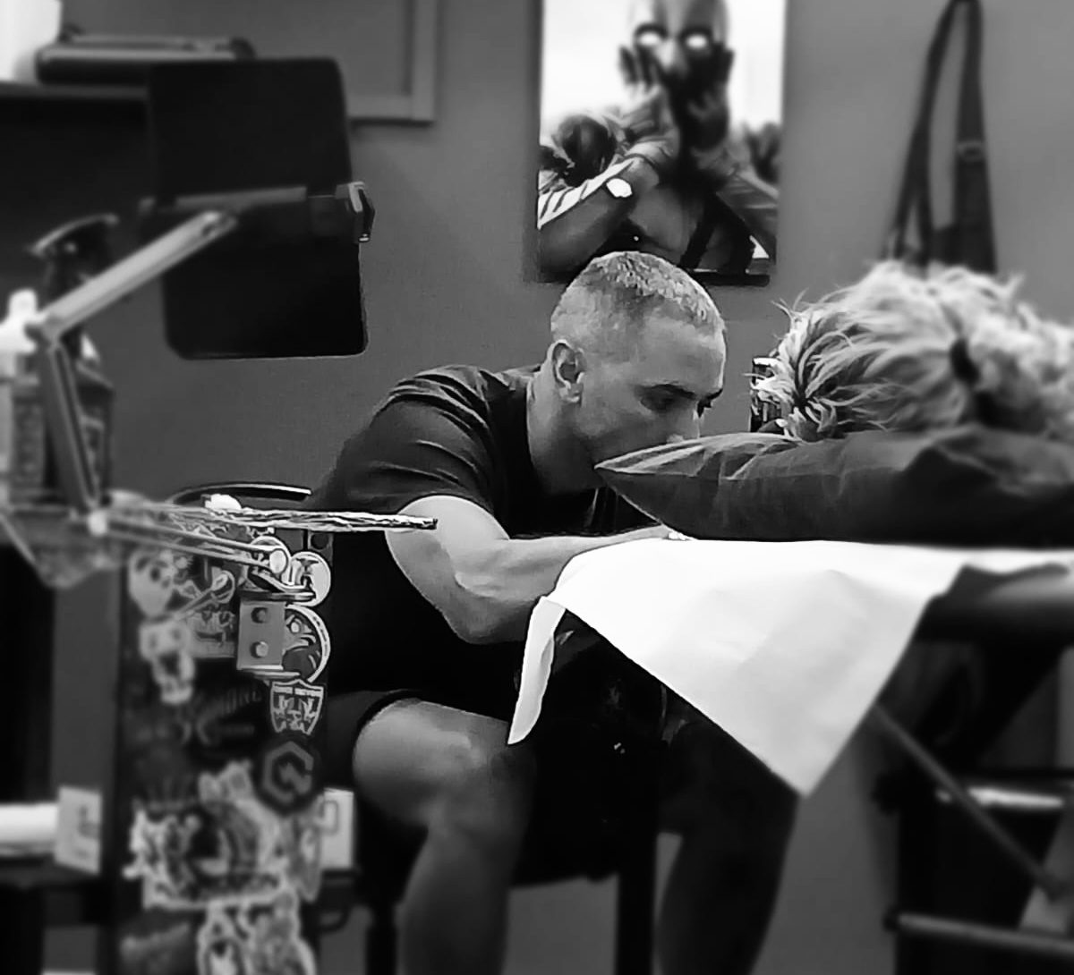 Cada tatuaje es una expresión única de tu identidad. Mi enfoque se centra en diseños detallados y cargados de significado, donde convergen la geometría y lo ornamental. El uso de negros sólidos y el puntillismo definen mi estilo y dan forma a composiciones auténticas y personales.